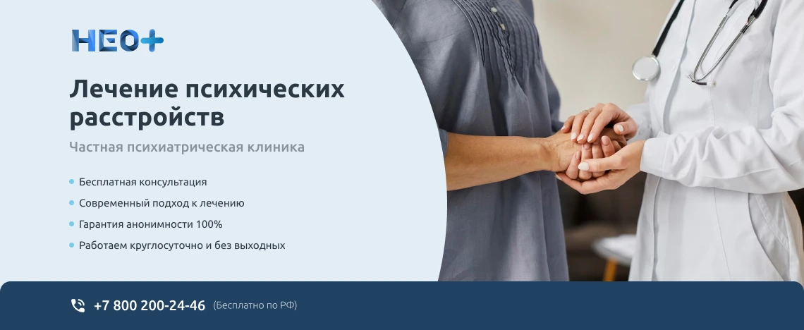 Записаться на прием к врачу-психиатру можно на официальном сайте клиники «НеоПлюс» в Кабардинке или по телефону ☎️ +7 (800) 200-24-46. Звоните нам, не запускайте проблему. Мы знаем, как вернуть здоровье и покой в Вашу семью!